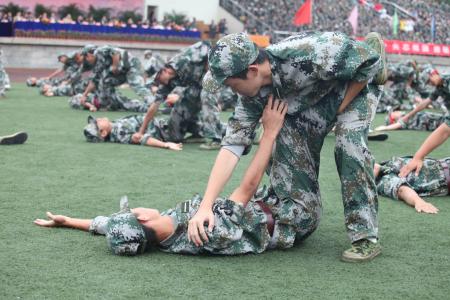随后,2011级学生进行了分列式和军训成果汇报表演。分列式由男生挂枪方队、女生红贝雷帽方队、男女生盾牌方队、女生船形帽方队四个特色方队和12个军训营方队组成,他们步代整齐,精神抖擞,口号响亮,训练有素,赢得了赞许的目光和阵阵掌声。军事课目表演更是声势浩大,场面宏伟,威风锣鼓响彻云霄;军体拳表演,虎虎生威;队形变换,井井有条;警棍盾牌操表演,招招精彩。博得了在场所有人员的齐声喝彩!